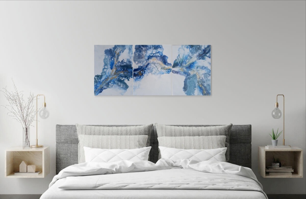 Composition of triple pouring acrylic painting on canvas.